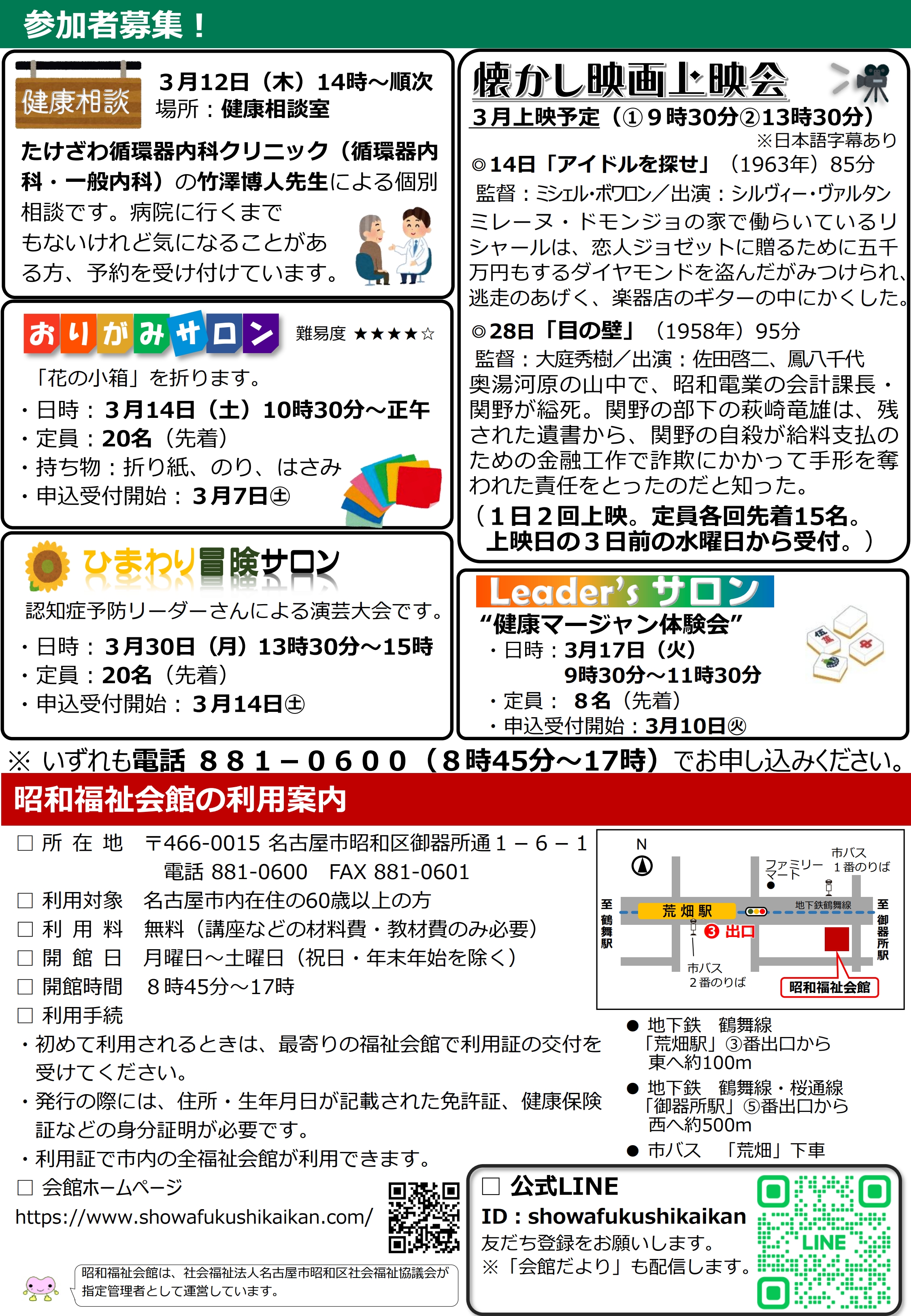 拡大 & 印刷用 令和8年3月号昭和福祉会館だより