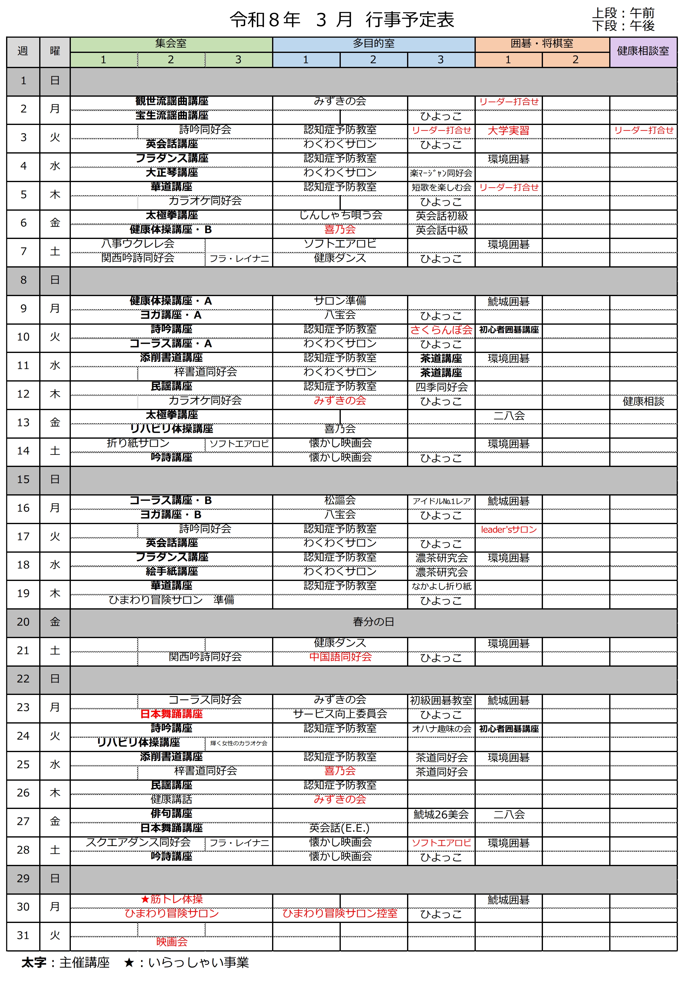 拡大 & 印刷用 令和8年3月行事予定表 & 2月行事予定表 へ